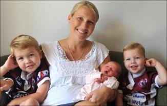 (Story and bottom photo from Manly Daily, February 14 2012; top photo from Manly Daily September 4 2009, showing Matt and Shannan with son Fletcher; bottom photo shows Shannan and the three children)