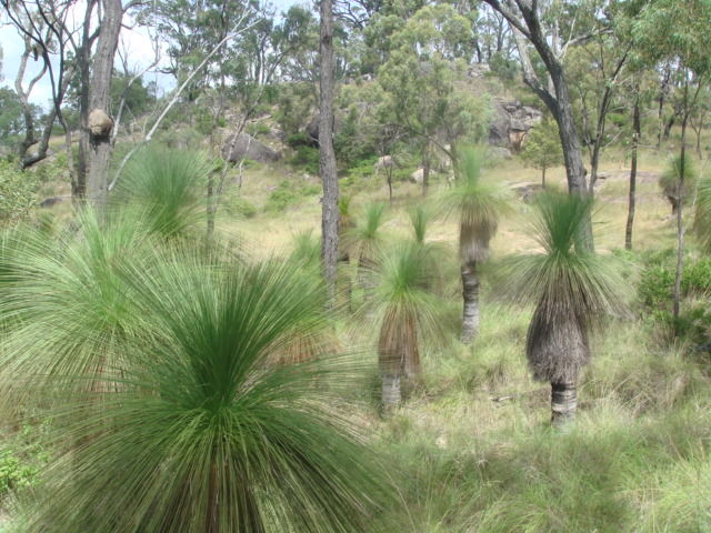 (Picture shows native grass trees in autumn near Kingaroy in Queensland; photo from There’s Nothing Like Australia)
