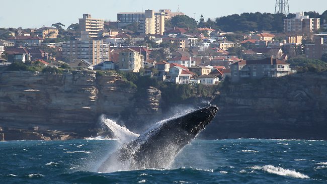 (June is whale-watching season in Sydney due to winter migration; the picture shows a humpback whale off Dover Heights in June. Photo from The Daily Telegraph)