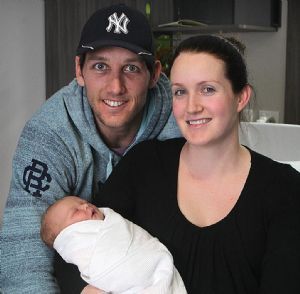 Michael Doughty from the Adelaide Crows, and his wife Sara, welcomed a baby boy named Max Thomas recently. Michael and Sara (nee Vecchio) were married in 2008.