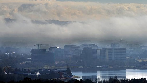 (Picture shows morning mist over the city of Canberra, July 2012; photo from the Canberra Times)