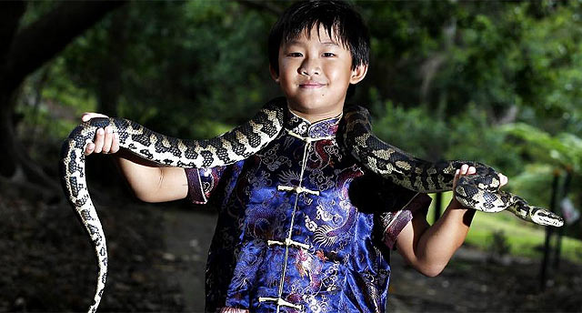 (Photo shows Ian Ng from the Gold Coast, modelling a python for the Chinese New Year; according to this article, a baby born in the Year of the Snake will be lucky)