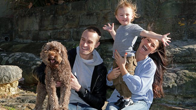 (Photo shows Ryan and Belinda with Hewie and their dog Cooper)