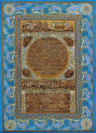(The picture shows a 17th century Ottoman calligraphy panel by Hafiz Osman, describing the physical appearance of the prophet Muhammad; it is not permitted to show images of Muhammad in Islam)