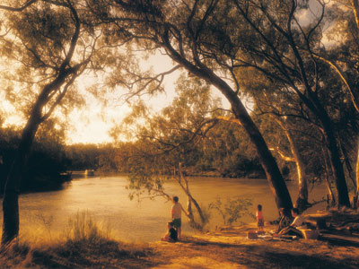 (Picture shows a family picnic by the Murray River, near Mildura in Victoria)