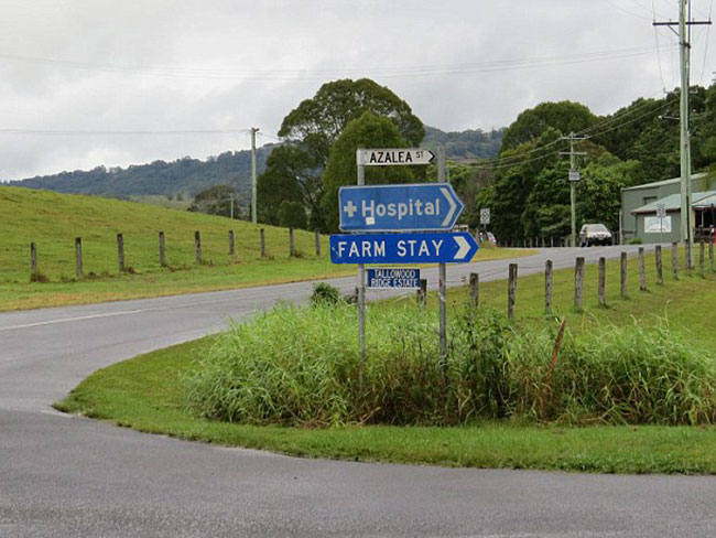 (Top photo shows purple azalea flowers; bottom photo shows Azalea Street in Mullumbimby)