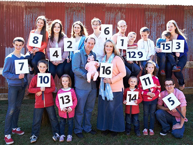 Katelyn joins siblings Jesse, aged 24, Brooke, aged 23, Claire, aged 21, Natalie, aged 19, Karl, aged 17, Samuel, aged 16, Cameron, aged 14, Sabrina, aged 13, Timothy, aged 11, Brandon, aged 9, Eve, aged 8, Nate, aged 7, Rachel, aged 5, Eric, aged 4, and Damian, aged 3.
