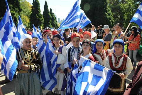 (Photo shows Greek-Australian students celebrating Greek Independence Day in Melbourne; about half of all Australians of Greek descent live in Melbourne, and Melbourne has the largest Greek community outside Greece itself).