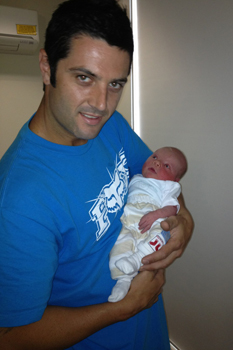 Soccer player for Sydney FC, Jamie Coyne, and his wife Tanja, welcomed their first child on Tuesday October 25. They have named their son Lucas, and Jamie says that they did not name him after Socceroos skipper Lucas Neill – it was just the only name they could agree on.